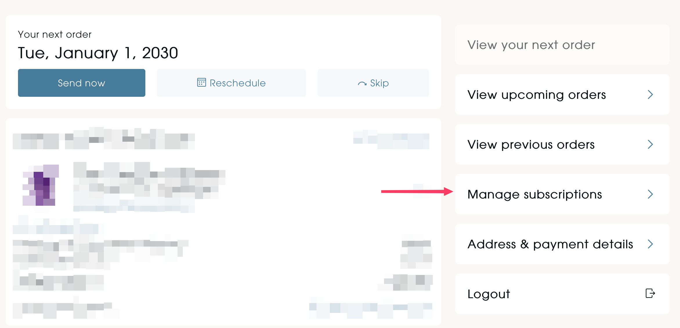 - In your subscriptions portal page, click on the link saying Manage subscriptions on the right: